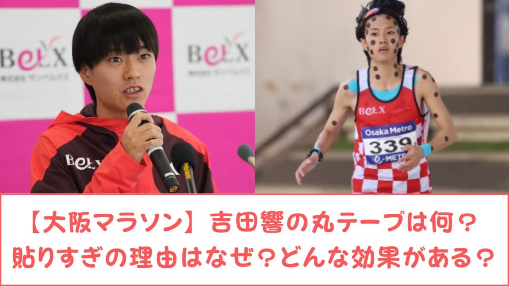 大阪マラソン中継で注目を集めた吉田響選手の“黒い丸テープ”。 見た目のインパクトからSNSでも話題になり、 「あの丸いシールは何?」「貼りすぎでは?」「本当に効果があるの?」 と気になった方も多いのではないでしょうか。 そこで今回は、吉田響選手の... -