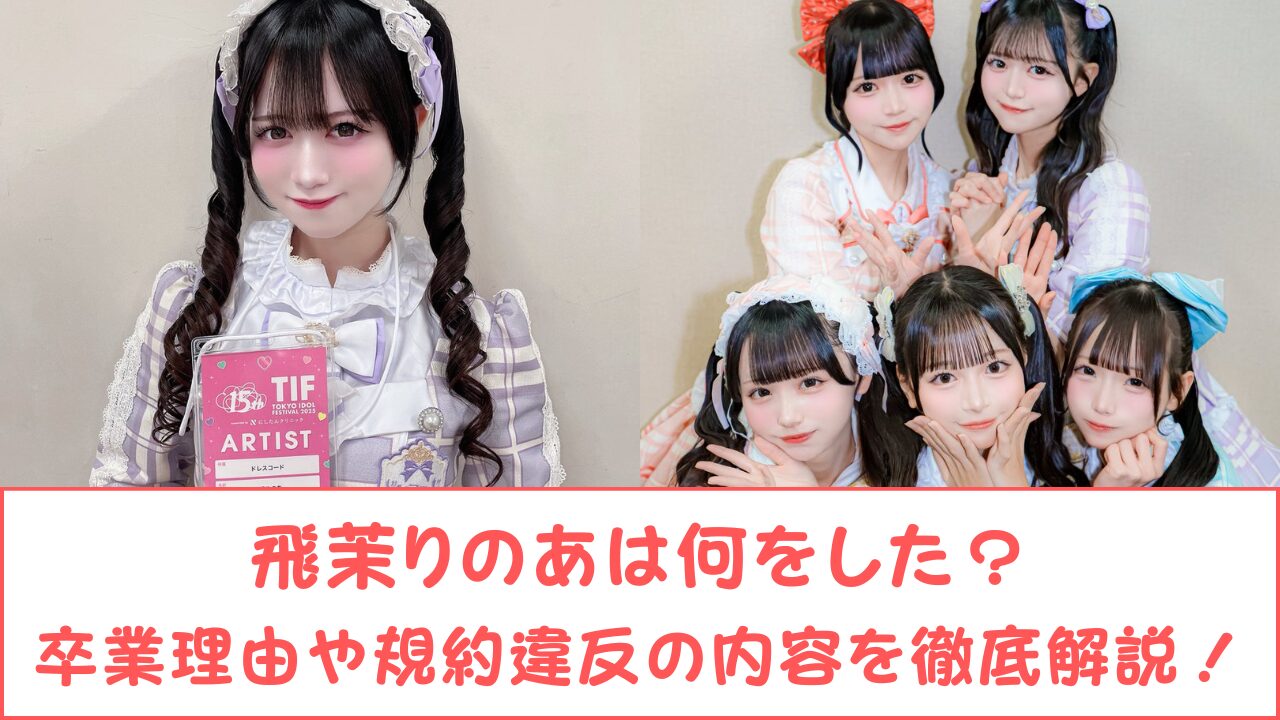 2026年4月22日、アイドルグループ「ドレスコード」のメンバー・飛茉りのあさんが事務所規約違反により卒業することが発表され、大きな話題となっています。