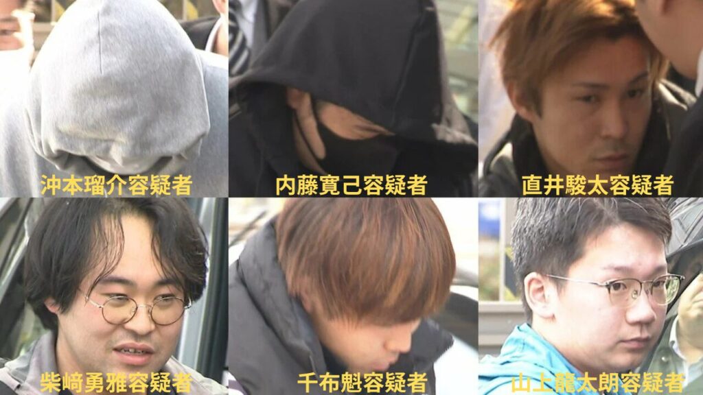 フードを被り顔を伏せている容疑者もいますが、報道で逮捕時の様子が映し出されています。