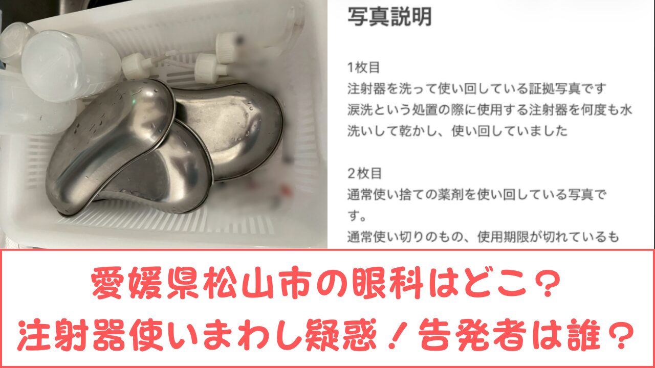 愛媛県松山市の眼科で、医療用注射器の使いまわしが行われていた可能性があるという疑惑が浮上し、SNSを中心に大きな注目を集めています。